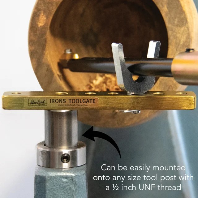 - DEEPER HOLLOWING – Hollow even larger and deeper vessels when using the Irons Tool Gate. This rest can even be rotated and positioned into your vessel enabling deeper hollowing and reducing the, usually, unsupported length of your hollowing tool inside your hollow form. Hollowing of forms up to 19″ deep have been achieved with the Irons Tool Gate.